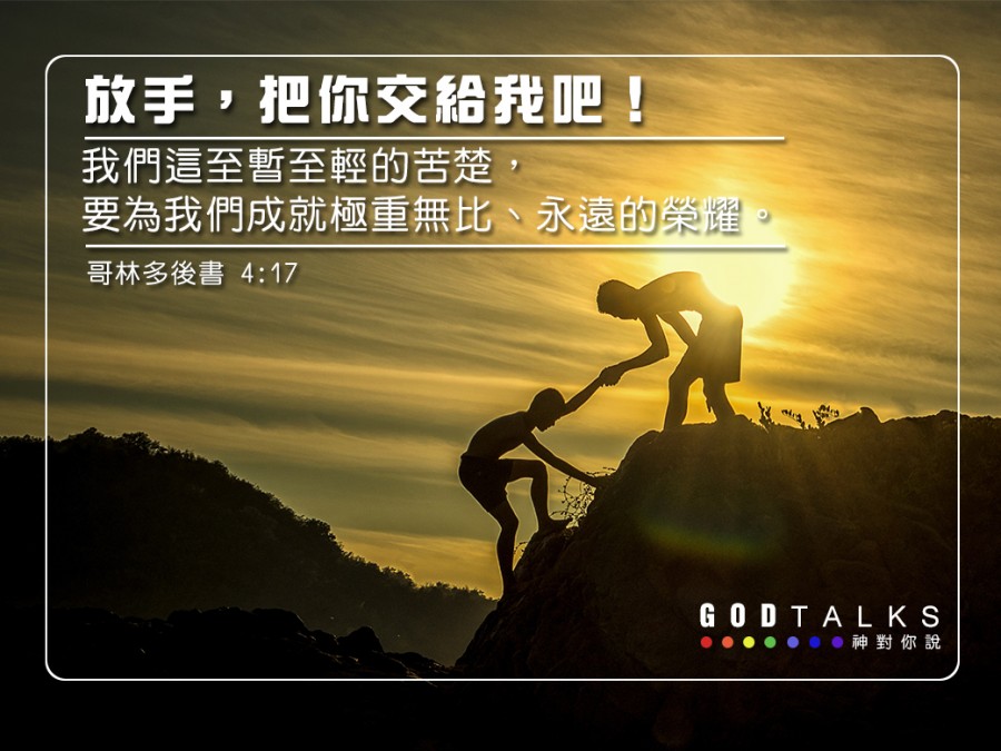 我們這至暫至輕的苦楚,要為我們成就極重無比、永遠的榮耀。 (哥林多後書 4:17)