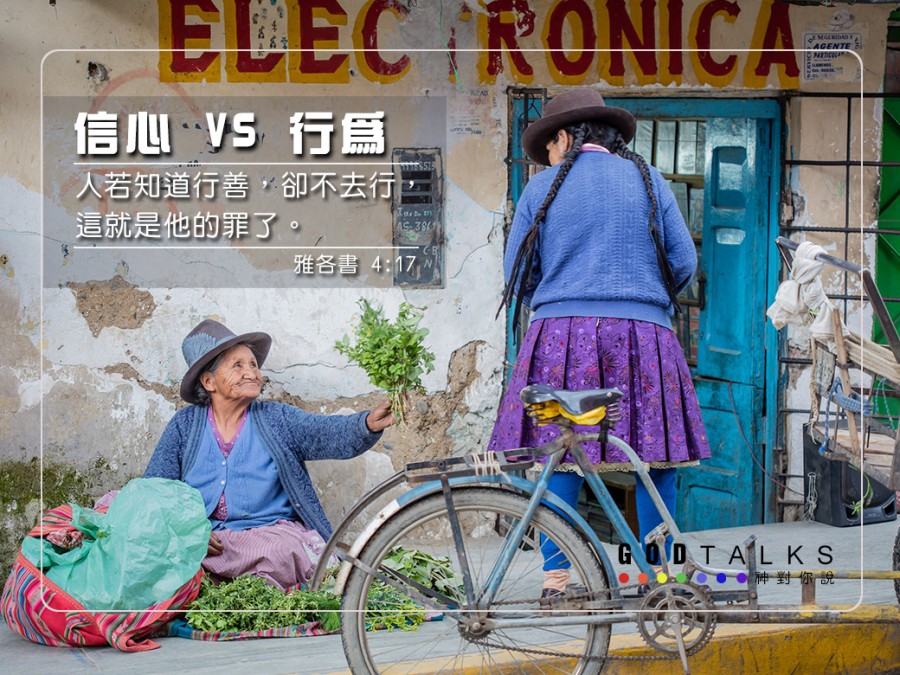 願神今天在心中對你說:孩子,你的信心與行為是不衝突的。你對我有信心,自然而然會有好的行為。我知道你有軟弱,還是會犯錯,但你知道我與你同在,我會幫助你成唯一個全新的人。