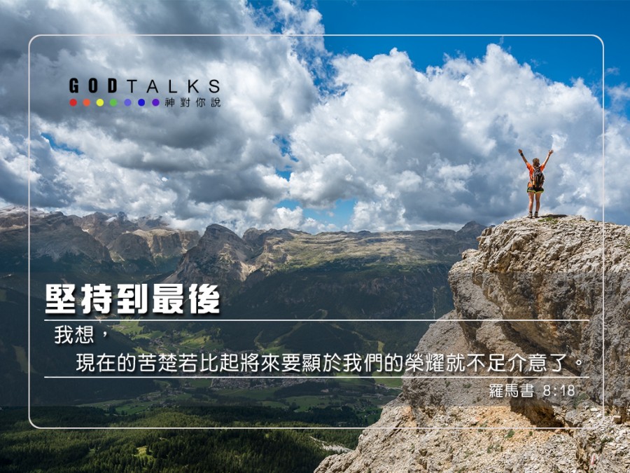 願神今天在心中對你說:孩子,我知道你的辛苦,也看到你困難,但是只要你能定睛在未來的榮耀與獎賞,現在的這些痛苦就沒什麼了。我會陪著你走,你不用擔心。