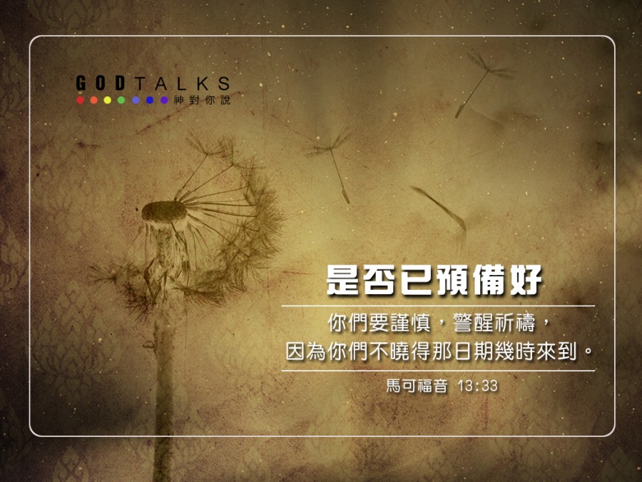 你們要謹慎,警醒祈禱,因為你們不曉得那日期幾時來到。 (馬可福音 13:33)