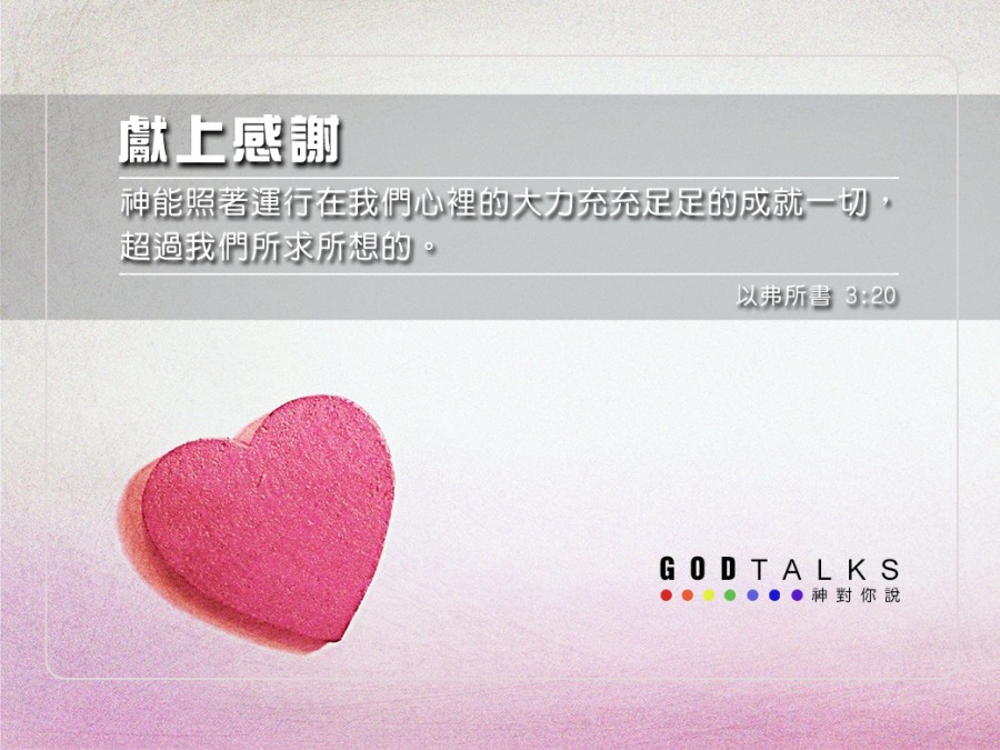 神能照著運行在我們心裡的大力充充足足的成就一切,超過我們所求所想的。 (以弗所書 3:20)