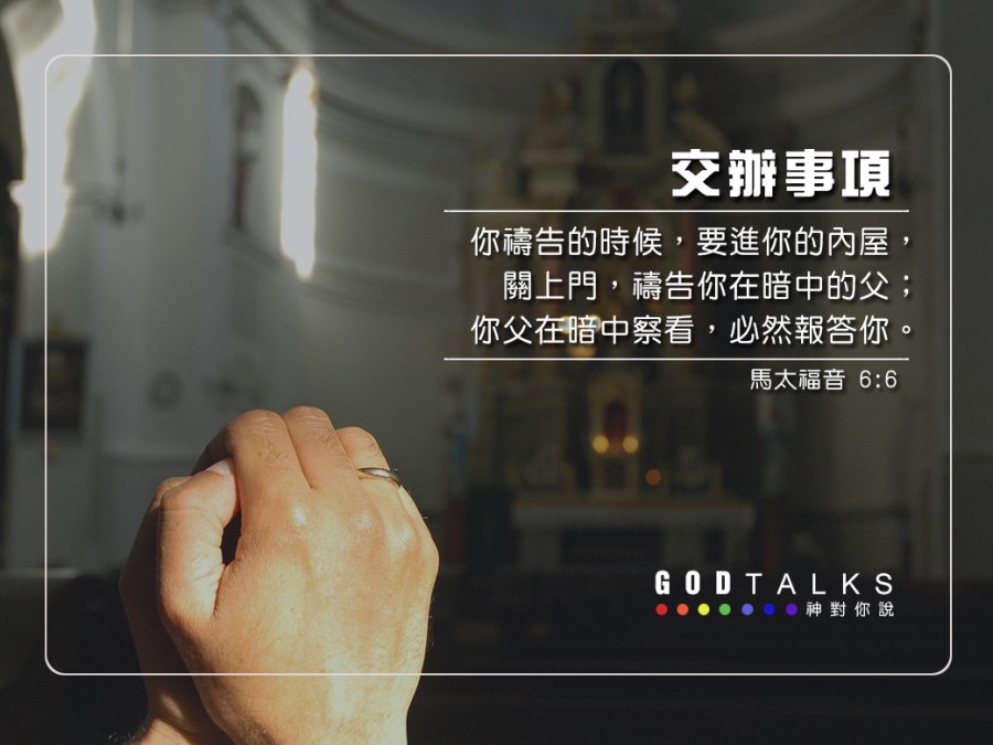 我們是否發現,自己的禱告有一些不太成熟的態度,我們向神禱告,好像在向神提出交辦事項。「神哪!求你做….,神哪!拜託你把….,神哪!你一定可以…..。」。更慘的是,我們還常常交辦完了之後,一轉眼就忘記自己剛才到底跟上帝說了些什麼?因為我們的禱告,常常只是有口無心!其實,與其給神一些交辦事項,不如想想有什麼是神要我們做的,因為神的計畫永遠高於我們的所求所想。若我們都能行天父上帝所交辦的事,這個世界應該會變得更美好,我們也能從中得到更多的祝福。