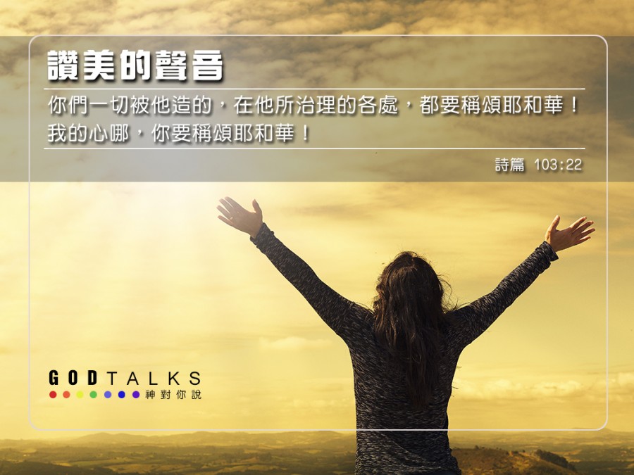 你們一切被他造的,在他所治理的各處,都要稱頌耶和華!我的心哪,你要稱頌耶和華! (詩篇 103:22)