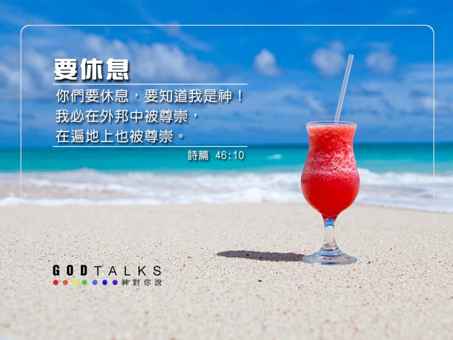 你們要休息,要知道我是神!我必在外邦中被尊崇,在遍地上也被尊崇。 (詩篇 46:10)