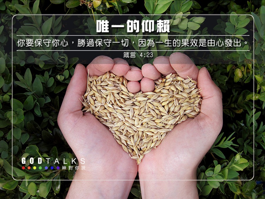 你要保守你心,勝過保守一切(或作:你要切切保守你心),因為一生的果效是由心發出。 (箴言 4:23)