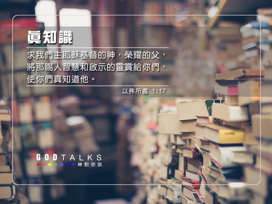 下週就是大學學測,考生們考的好就要開始準備第二階段面試等等的一連串體驗,從報名、依各校的不同標準作不同的準備、管理面試時間、處理交通資訊與行程,是一個獨立的開始。但人世上的成績再好,若沒有真理的知識是可憐的,只有世上學問的知識,不過如同一個閉門讀書的人一樣,許多事還是不清楚,屬靈屬天的事物更是如此,是頭腦知識所不能理解的,所以沒有能力和實際。因此有一個很大的需要,就是要得到賜人智慧和啟示的靈,使人能真知道神。