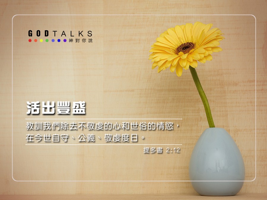 教訓我們除去不敬虔的心和世俗的情慾,在今世自守、公義、敬虔度日, (提多書 2:12)