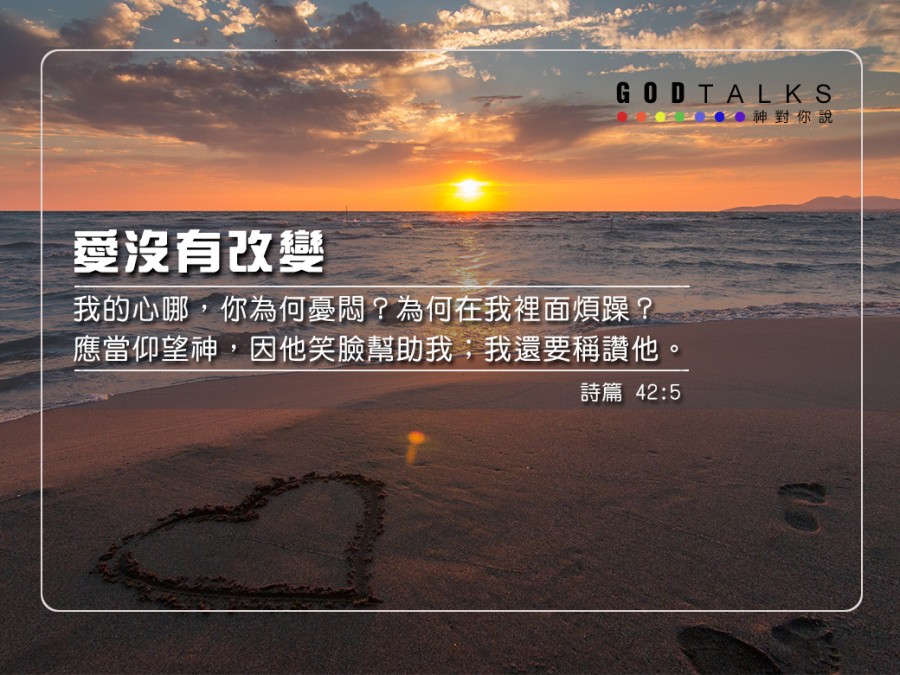 我的心哪,你為何憂悶?為何在我裡面煩躁?應當仰望神,因他笑臉幫助我;我還要稱讚他。 (詩篇 42:5)