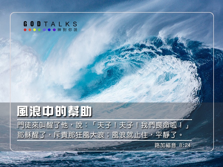 願神今天在心中對你說:孩子,你所遭遇的這些風浪我都知道。你不要害怕,因為我和你在同一艘船上。你要相信我,我有平息風浪的能力,我會讓這些風浪都成為你生命中的祝福。