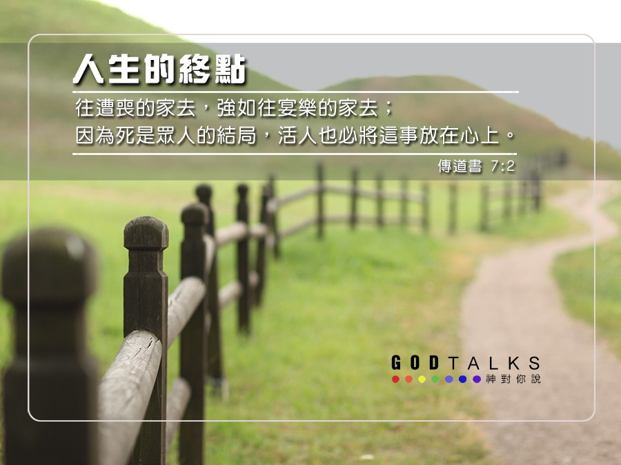 往遭喪的家去,強如往宴樂的家去;因為死是眾人的結局,活人也必將這事放在心上。 (傳道書 7:2)