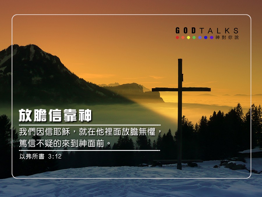 我們因信耶穌,就在他裡面放膽無懼,篤信不疑的來到神面前。 (以弗所書 3:12)
