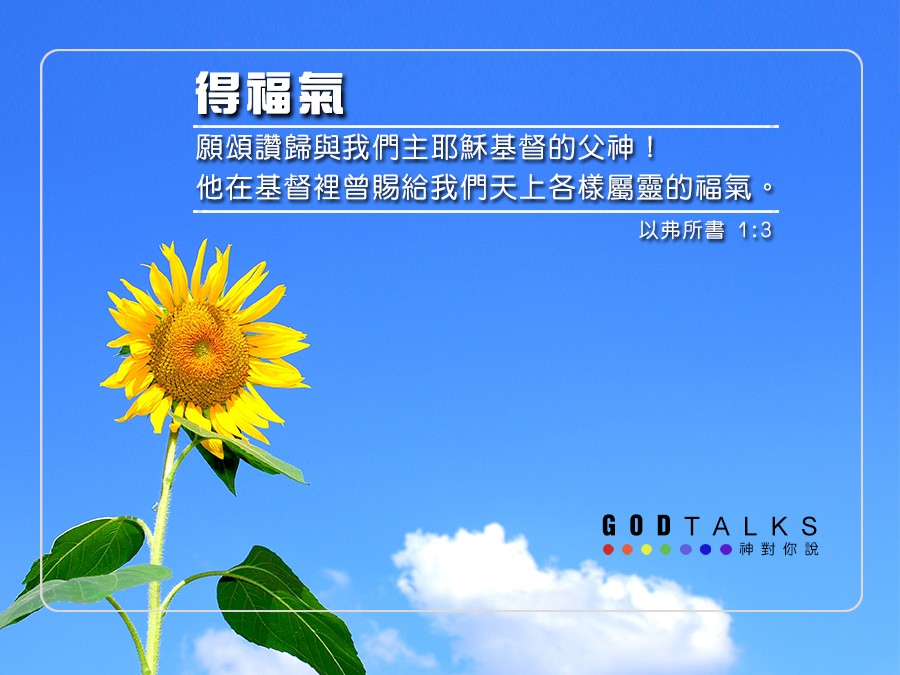 願頌讚歸與我們主耶穌基督的父神!他在基督裡曾賜給我們天上各樣屬靈的福氣: (以弗所書 1:3)