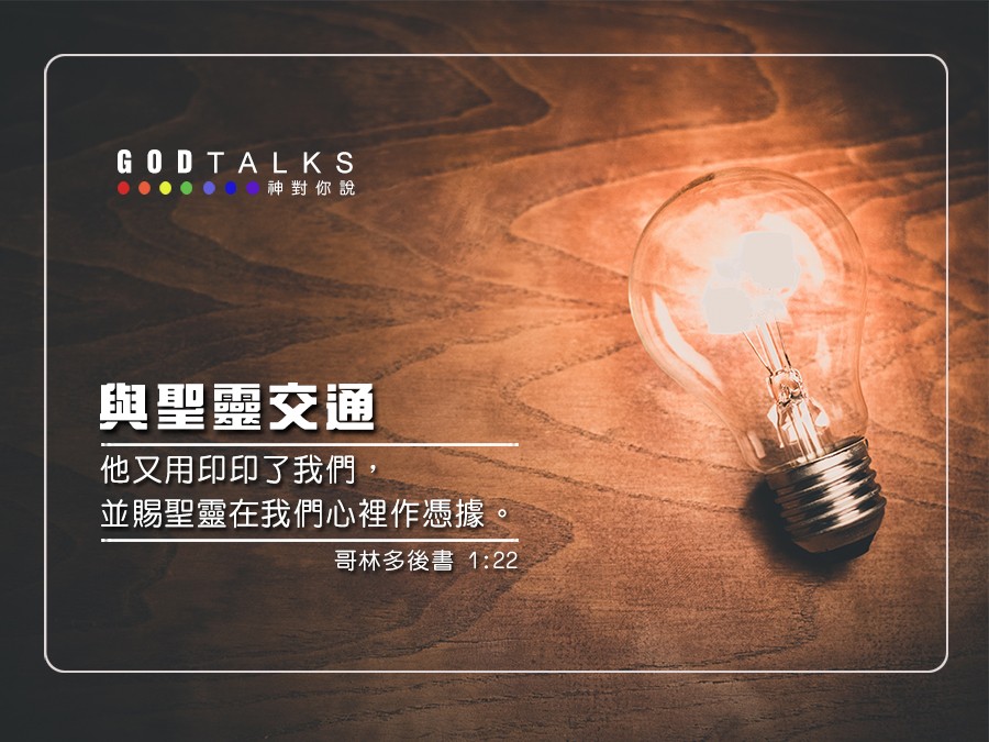 當我們與聖靈的交通斷絕,就像電燈斷電一樣,變成黑暗、無光、無熱、無力,同時也失去屬天的喜樂與內心的平安,屬靈的情況就完全不對了。聖靈是我們得救的印記和得基業的憑據。人若沒有基督的靈,就不是屬基督的,凡被神的靈引導的,都是神的兒子。因此一個信徒不但重生是由於聖靈,以後屬靈的生命也完全在於與聖靈的關係,那就是要隨從聖靈的引導,靠聖靈行事,不能消滅聖靈的感動,不可叫聖靈擔憂。