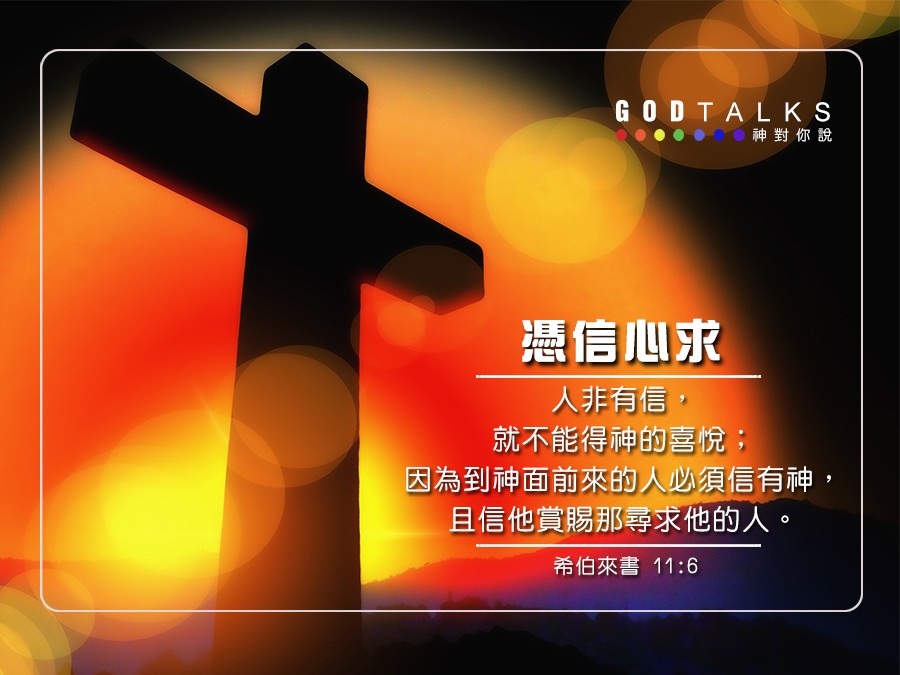 人非有信,就不能得神的喜悅;因為到神面前來的人必須信有神,且信他賞賜那尋求他的人。 (希伯來書 11:6)