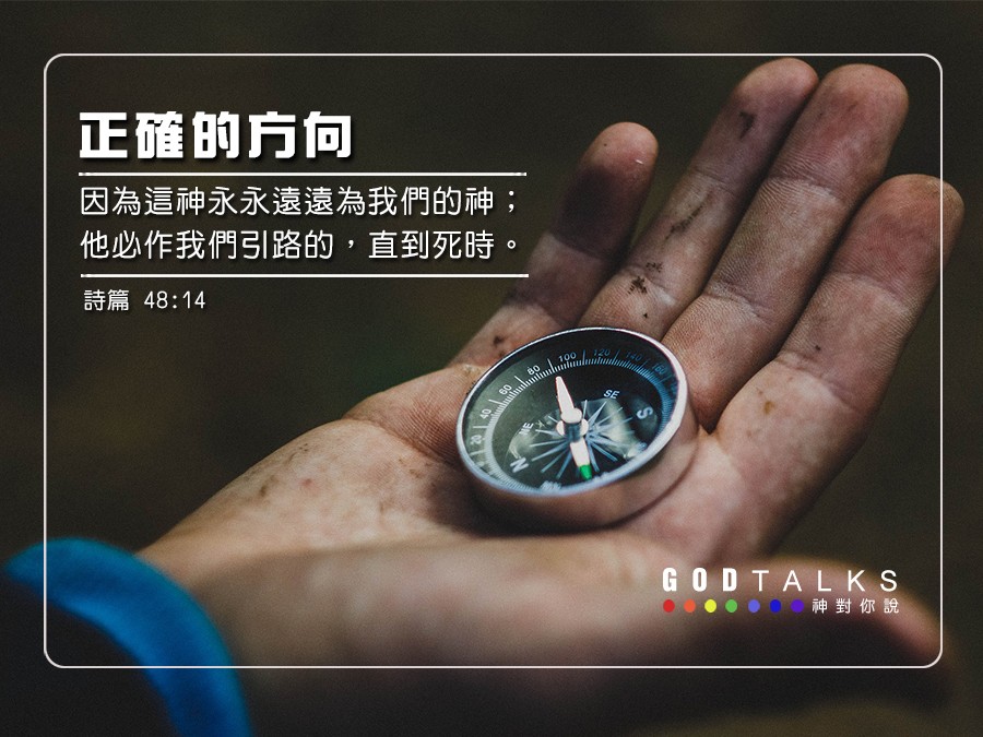 我們每天從早到晚忙得不可開交,每到夜深人靜時卻覺得空虛;即使社群網站的朋友有幾百、幾千個,仍然覺得孤單。年紀越大,越沒安全感,不知道是否還有明天;社會亂像也讓人害怕,找不到任何方向。這就是我們今生的真實寫照。當我們感覺迷失了方向,不要害怕,只要記得有基督在我們的生命中,人生就有會有正確的方向和目標。
