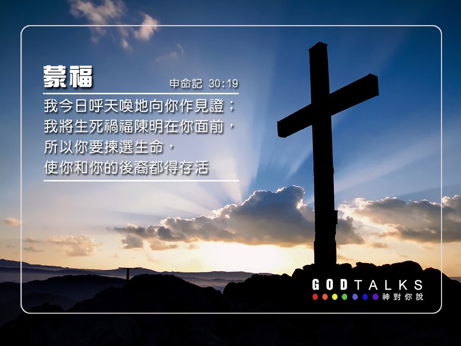 我今日呼天喚地向你作見證;我將生死禍福陳明在你面前,所以你要揀選生命,使你和你的後裔都得存活; (申命記 30:19)