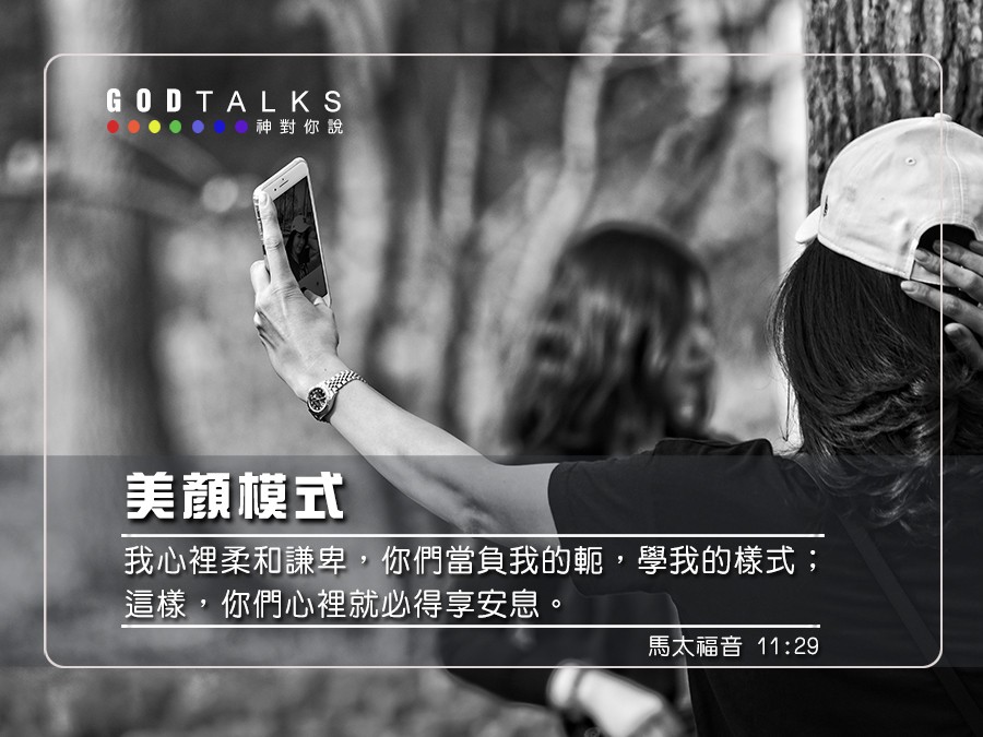 現在的手機拍照常有美顏模式,可以幫你修臉修膚色,讓每張照片拍出來都美美的,但有時修過了頭反而會感覺怪怪的。作為基督徒,我們也常在教會看到有些人(當然包含我們自己)有一種類似的「靈命美顏模式」,只要一踏進教會就自動表現得很屬靈,對人謙恭有禮,講話三句離不開聖經,但有時做過了頭反而會讓人感覺不太像平常的自己。其實神最在意的是我們生命的改變,而不是外表表現出來有多屬靈。神希望我們無論是在教會,還是在職場、家庭,或是一般生活中,都能活出基督的樣式,用好的行為來彰顯祂的榮耀。