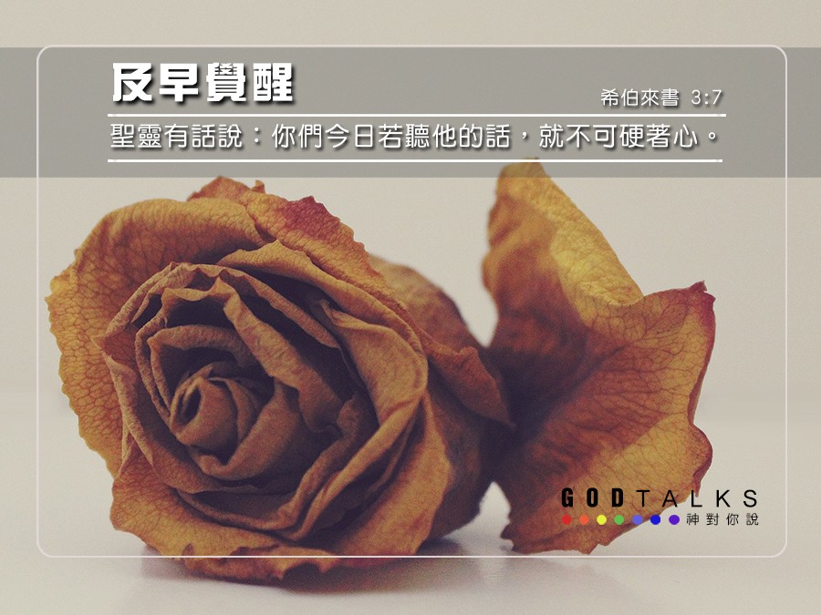 願神今天在心中對你說:孩子,所有的問題都要趁今天解決。那些想要等到明天再決定的念頭都是撒但的提議。聖靈的話是今日若聽祂的話,就不可硬著心。